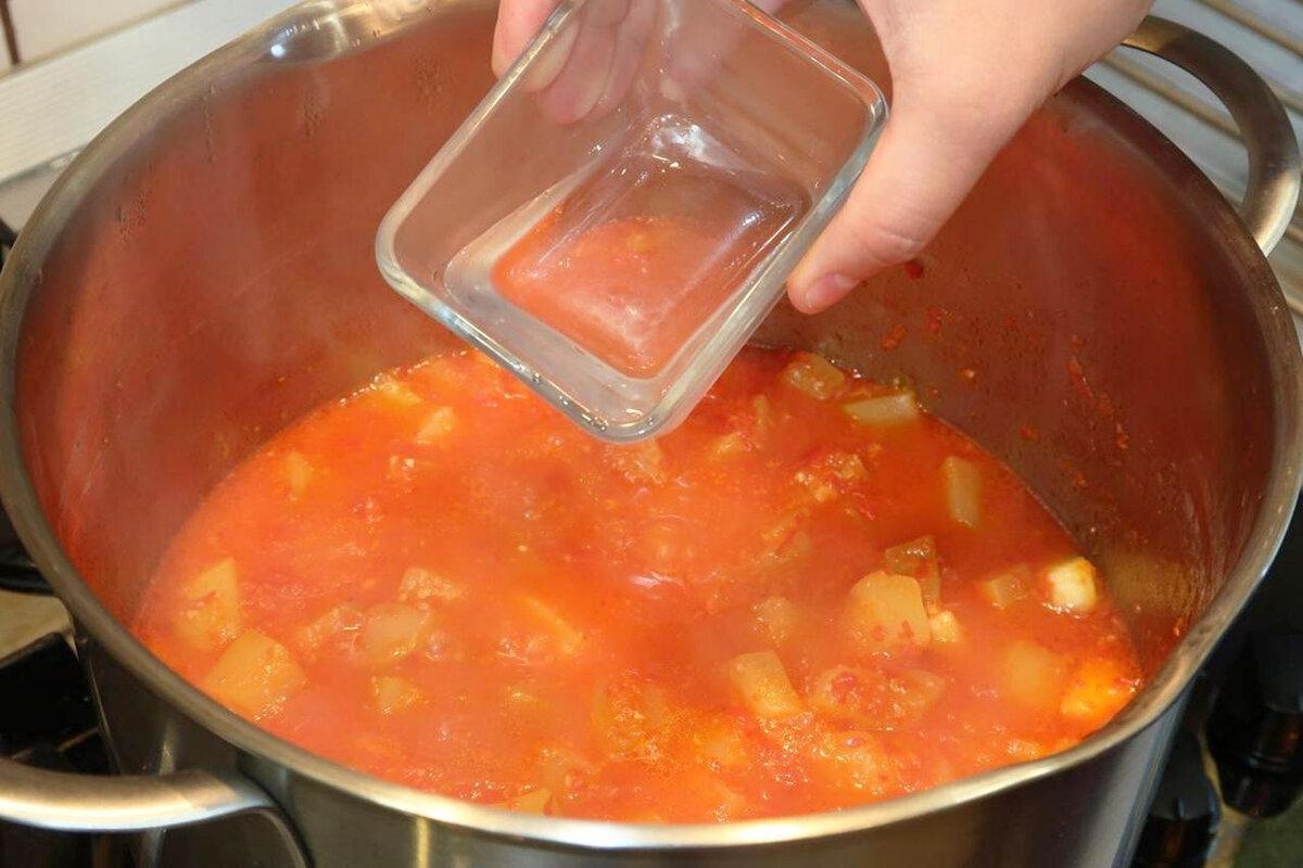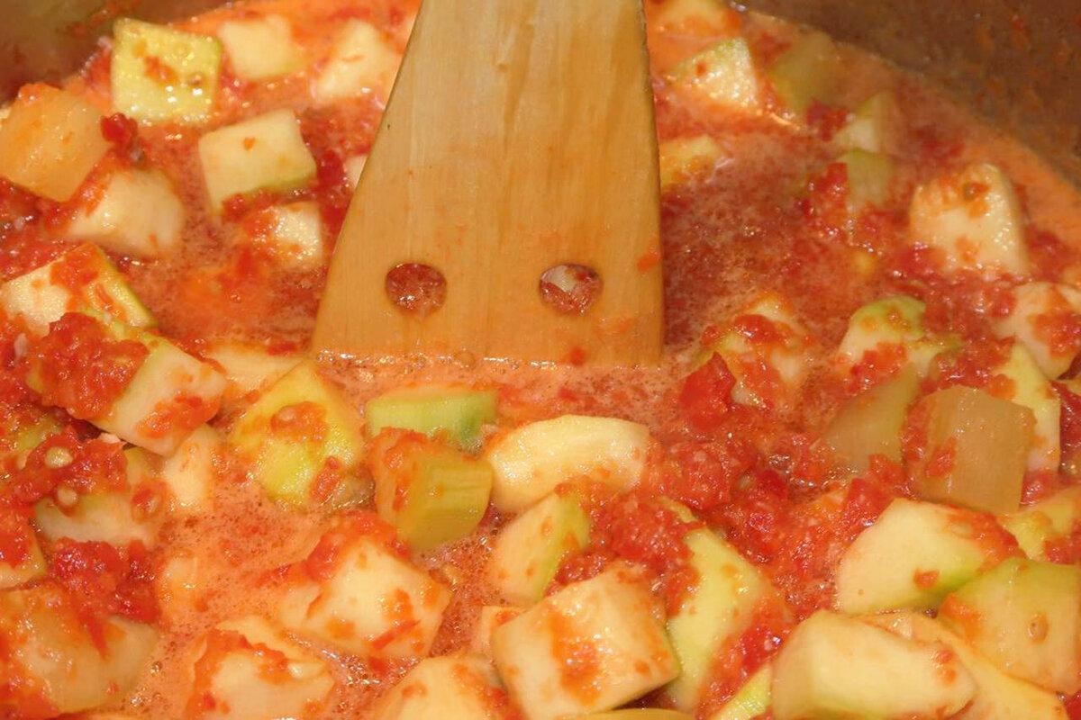 Затем в кабачки добавляем уксус, перемешиваем и варим еще 2 минуты.