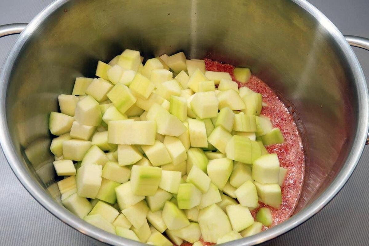 Далее добавляем к измельченным овощам подготовленные кабачки.