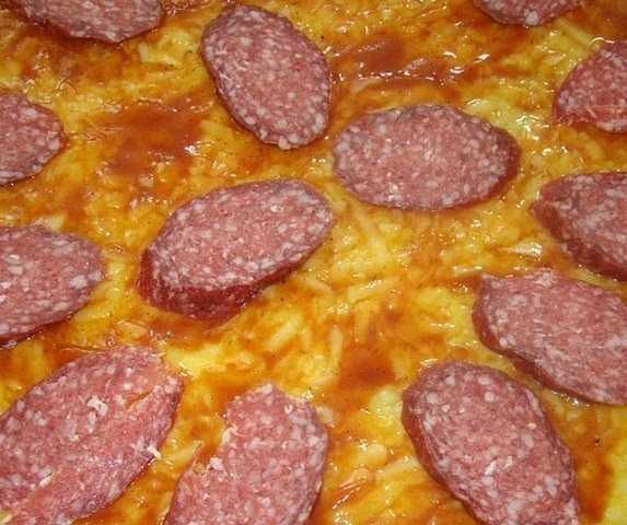 Картофельное тесто высыпать в форму для пиццы и разровнять его