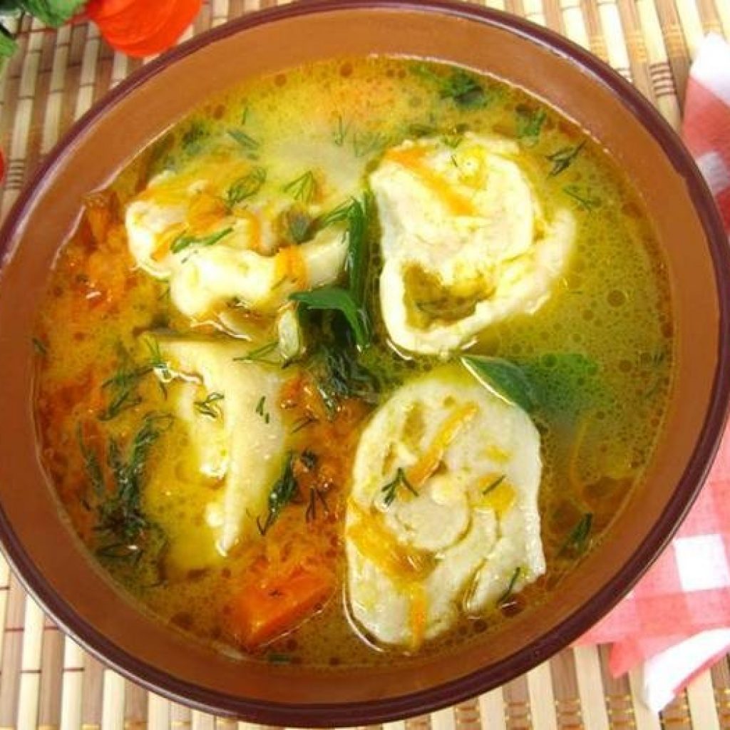 Рецепт приготовления куриного супа с сырными рулетиками: