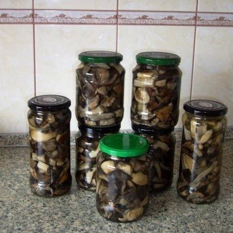 В стерилизованные банки на 2/3 выкладывала охлажденные грибы и заливала маринадом,сверху немного растительного масла. Для маринования лучше брать молоденькие,крепкие грибочки.