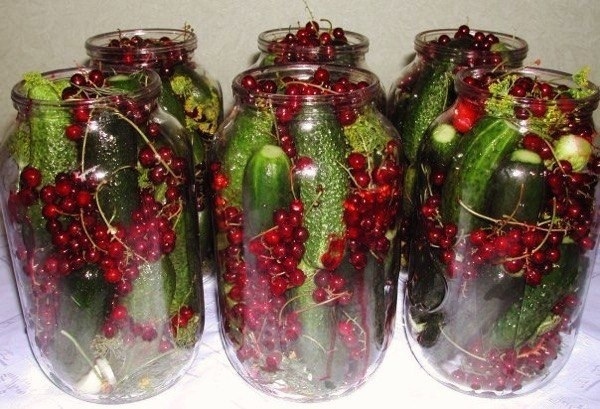 Огурцы получаются очень пикантные и хрустящие. Вкусная и маринованная смородина, такая неожиданная в банке с огурцами. Самое главное, это способ консервирования огурцов без уксуса – его заменит красная смородина.