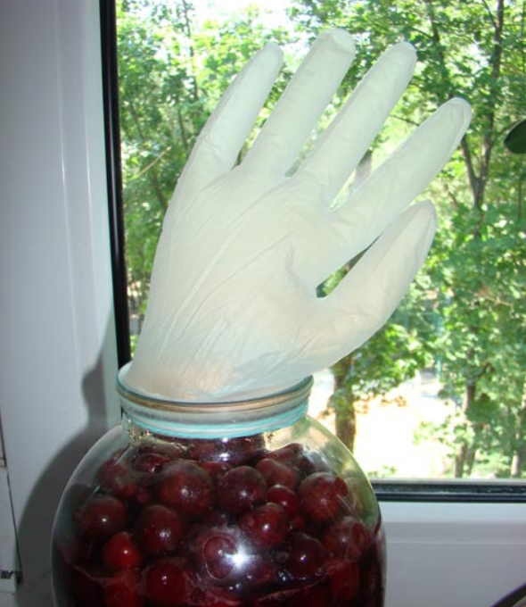 Вместо перчатки можно пользоваться водяным затвором, кто умеет (крышкой с трубкой, второй конец которой находится в воде, и пузырьки воздуха отходят в воду), но перчатка проще.