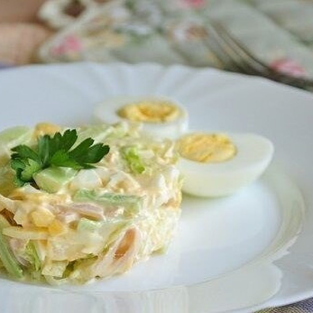 Вкусный праздничный салатик, нежный, но пикантный за счет чесночка.