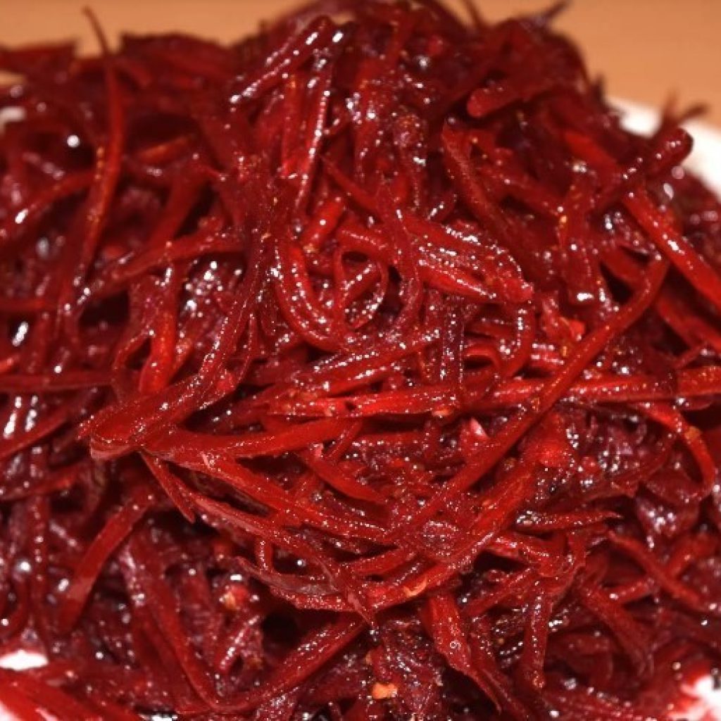 — 500 г красной сладкой свеклы— 3 зубчика чеснока
